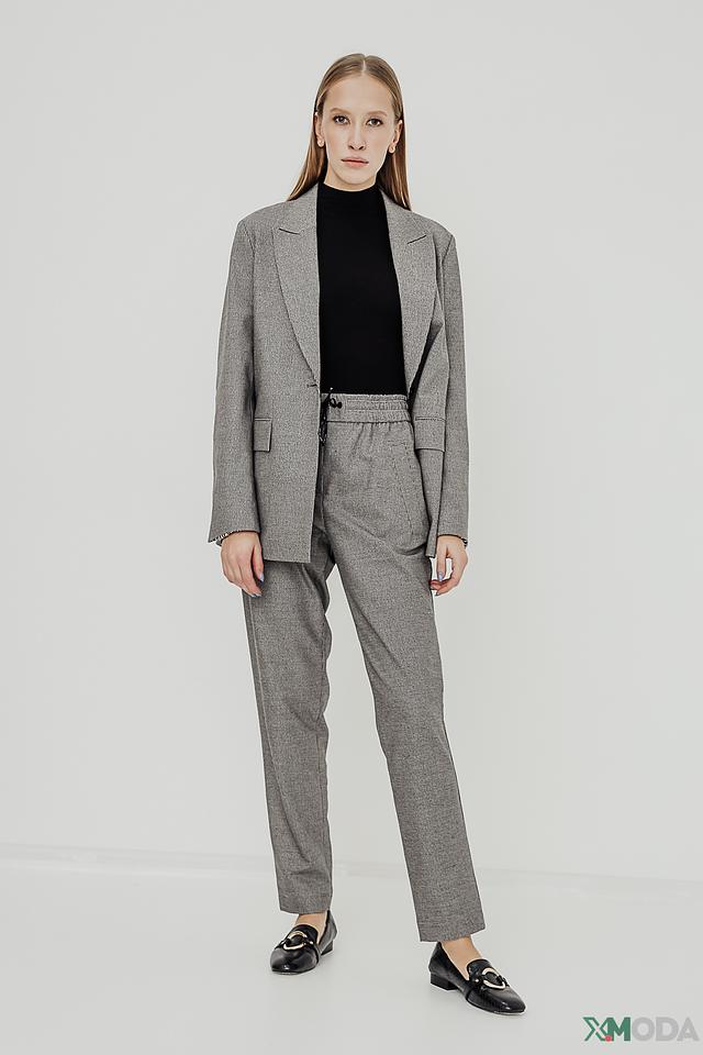 Брюки изготовлены из высококачественной смесовой ткани, в состав которой входит полиэстер, вискоза, шерсть и эластан. Такое сочетание материалов обеспечивает приятные тактильные ощущения, хорошую посадку по фигуре и устойчивость к сминанию.