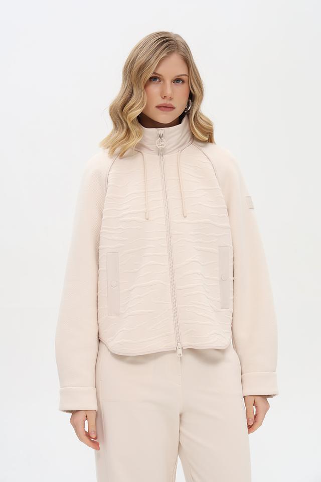 Бежевый жакет от Marc Cain – это стильное сочетание комфорта и элегантности. Модель выполнена из смесового материала с добавлением эластана, имеет стеганую фактуру и удобную застежку-молнию. Жакет станет отличным дополнением к вашему гардеробу. Состав: полиэстер 53%, хлопок 45%, эластан 2%