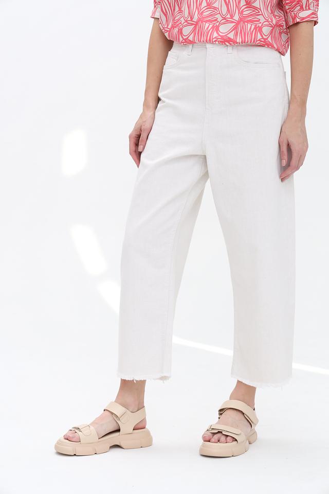 Благодаря нейтральному белому цвету, эти брюки легко сочетаются с различными элементами одежды, позволяя создавать разнообразные образы — от повседневных до более элегантных. Состав ткани: 87% хлопок, 13% лен.