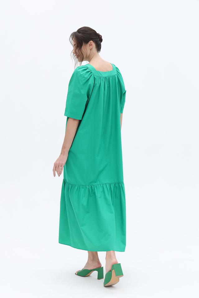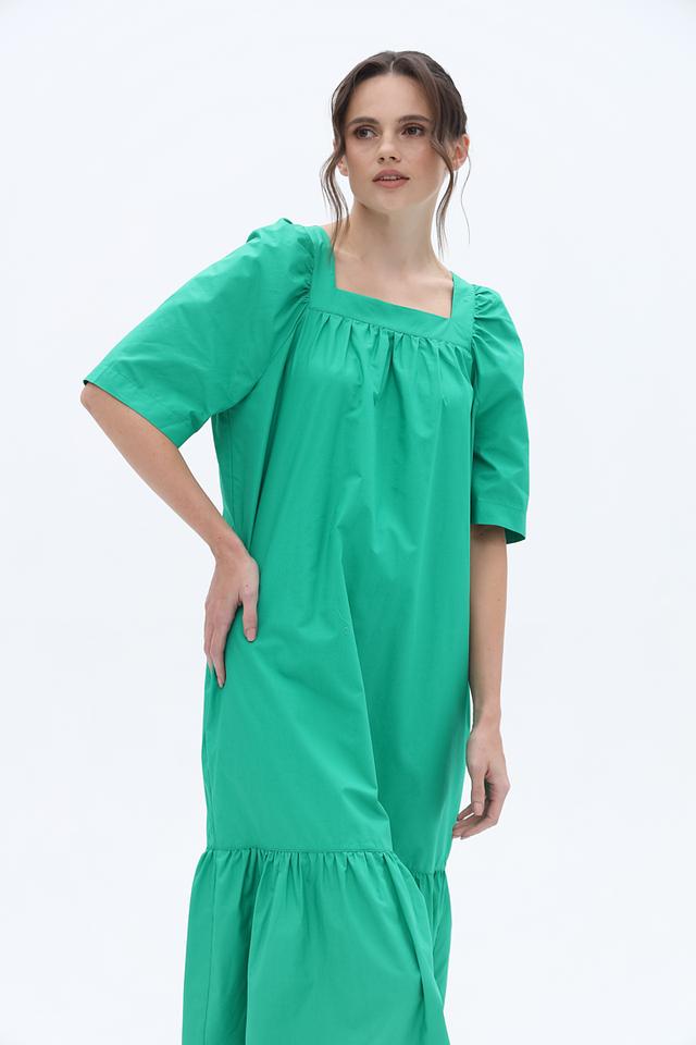 Благодаря своему лаконичному дизайну и универсальному зеленому цвету, это платье станет отличным дополнением к вашему гардеробу. Оно идеально подойдет для создания как повседневных, так и более нарядных образов. Состав: хлопок 59%, лиоцел 41%.
