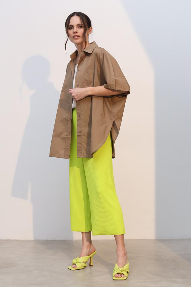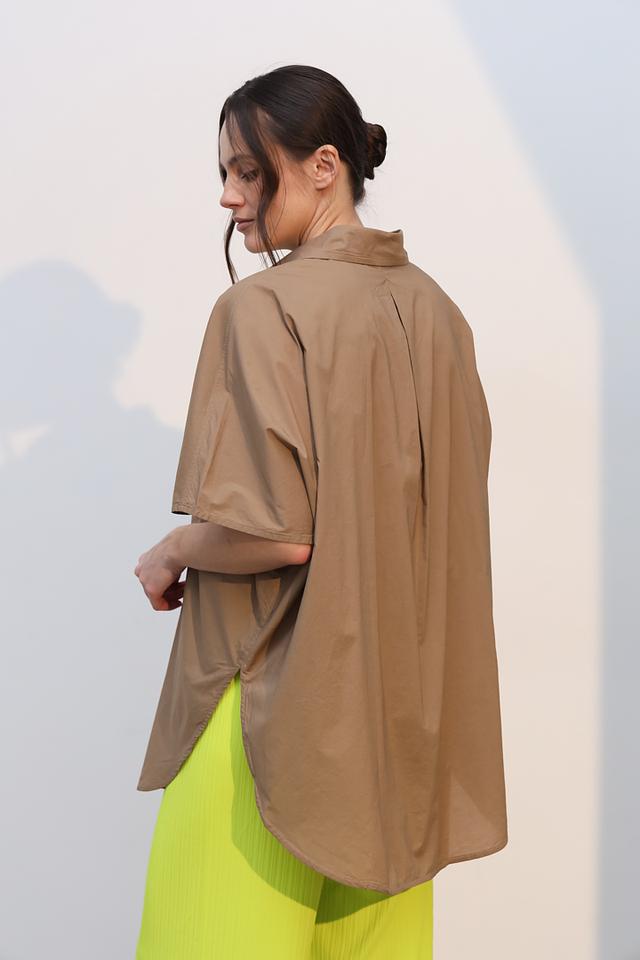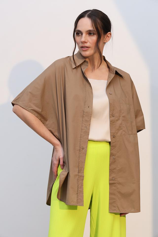 Рубашка имеет свободный, слегка оверсайз крой, который обеспечивает свободу движений и создает расслабленный силуэт. Короткие рукава делают ее идеальным выбором для теплой погоды.