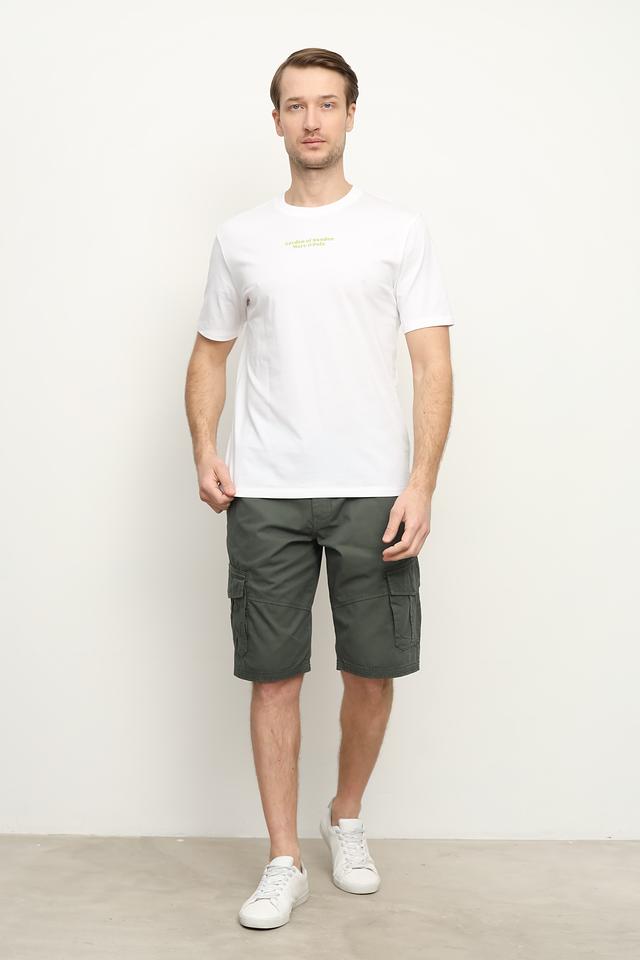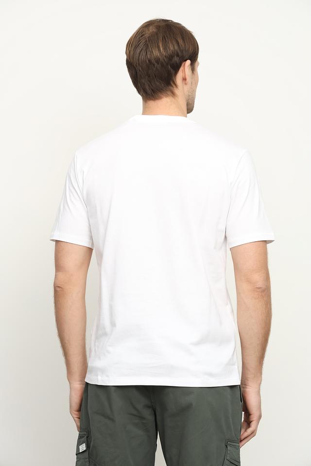 Футболка выполнена в белом цвете, что делает её легко сочетаемой с различными элементами гардероба. Она идеально подойдет для повседневной носки в теплую погоду.