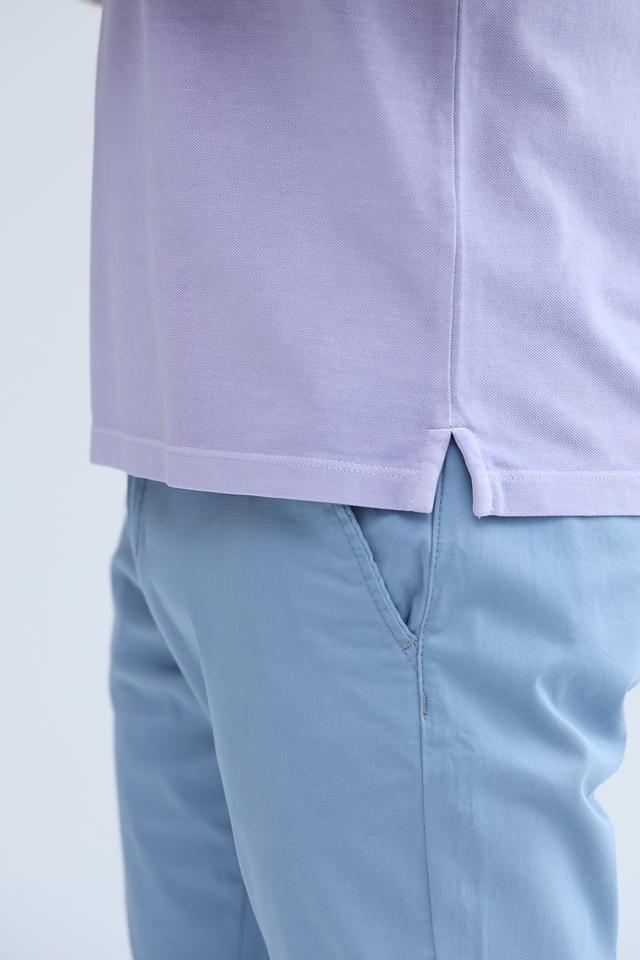 Данная модель имеет классический крой, который подходит для большинства типов фигур. Нежный лавандовый цвет придает поло изысканность и позволяет легко сочетать его с различными элементами гардероба. Воротник поло выполнен из эластичного трикотажа, что обеспечивает комфортную посадку.