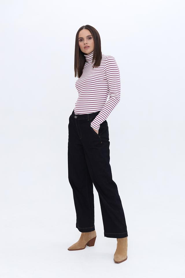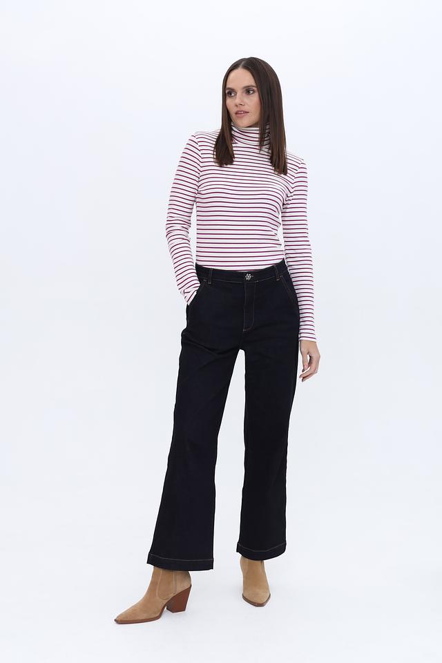 Эта модель идеально подойдет для создания как повседневных, так и более элегантных образов. Ее можно сочетать с джинсами, брюками, юбками или носить под пиджак или кардиган. Состав: модал 48%, хлопок 47%, эластан 5%.