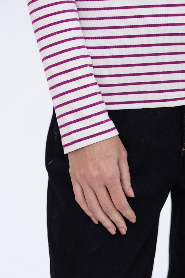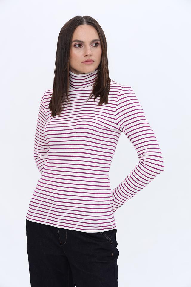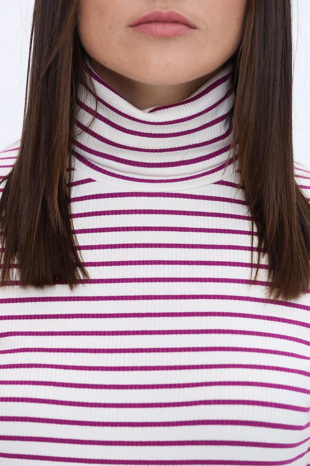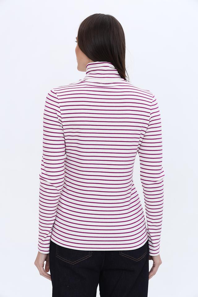 Водолазка Marc O Polo белого и бордового цвета с классическим дизайном в полоску. Изготовлена из мягкого и приятного к телу модала с добавлением хлопка и эластана, обеспечивающих комфорт и хорошую посадку. Состав: модал 48%, хлопок 47%, эластан 5%