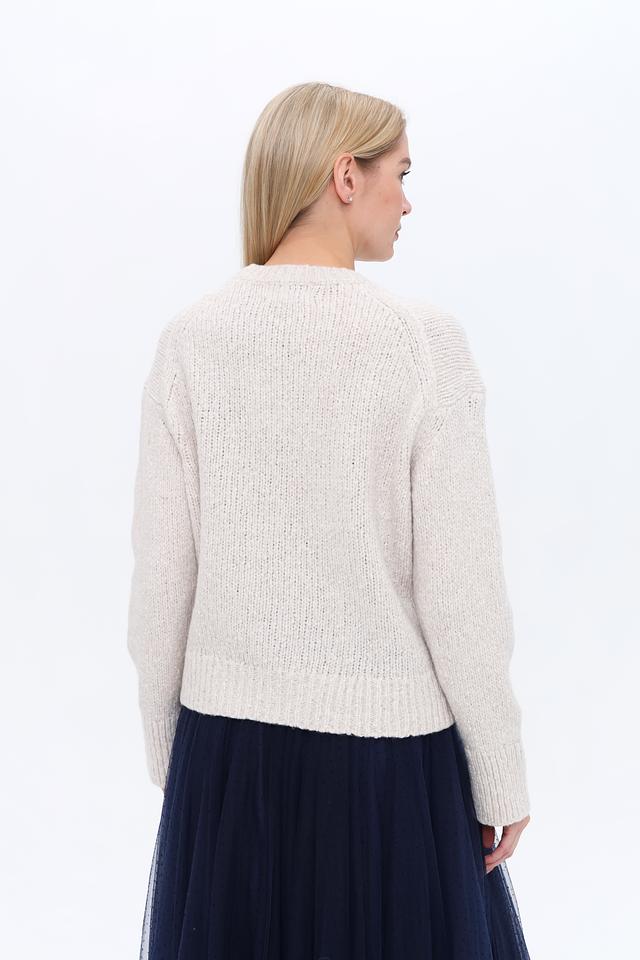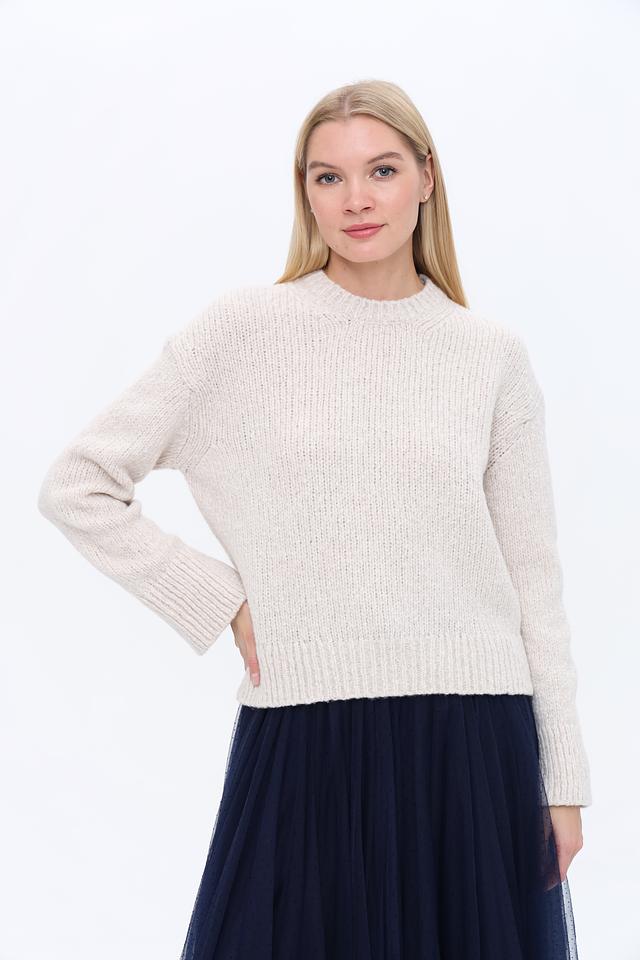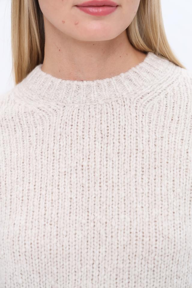 Бежевый пуловер Marc O Polo из мягкой пряжи с округлым вырезом горловины. Модель имеет свободный крой и текстурную вязку, что придает ей уютный и стильный вид. Состав включает шерсть и полиэстер. Состав: шерсть 84%, полиэстер 16%