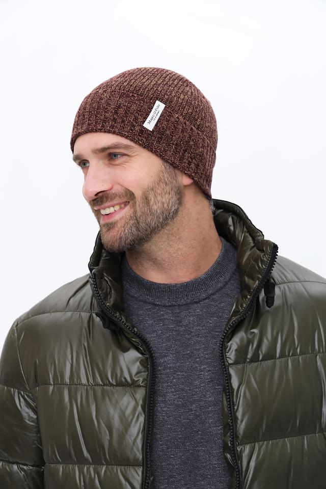 Шапка имеет классический дизайн и универсальный коричневый меланжевый цвет, который легко сочетается с различными элементами гардероба. Плотная вязка обеспечивает надежную защиту от ветра и холода.