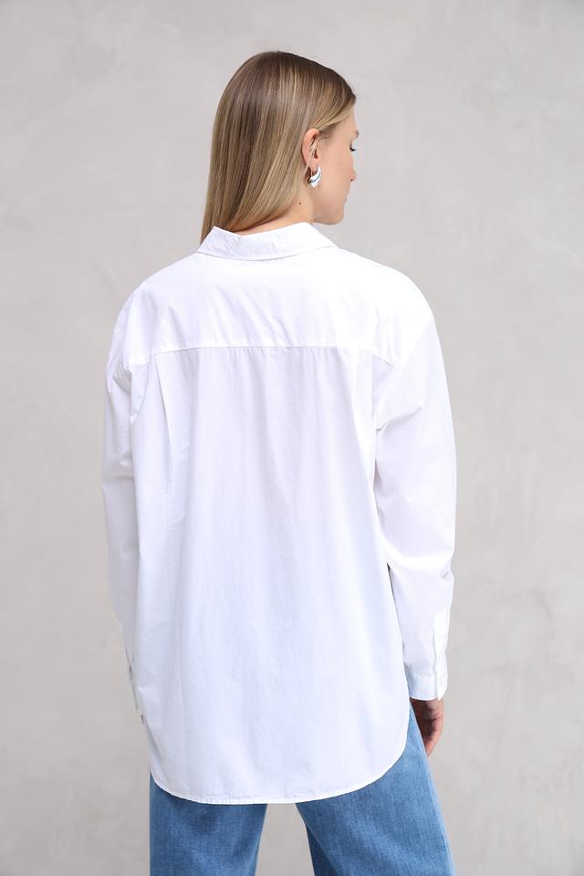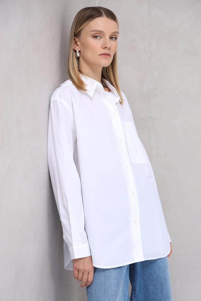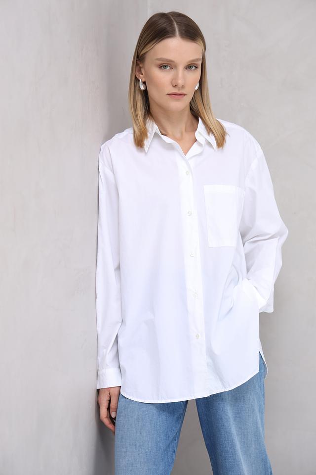 Белая рубашка Marc O Polo оверсайз кроя выполнена из 100% хлопка. Классический воротник и застёжка на пуговицы дополнены накладным карманом на груди, создавая лаконичный и стильный образ. Состав: хлопок 100%