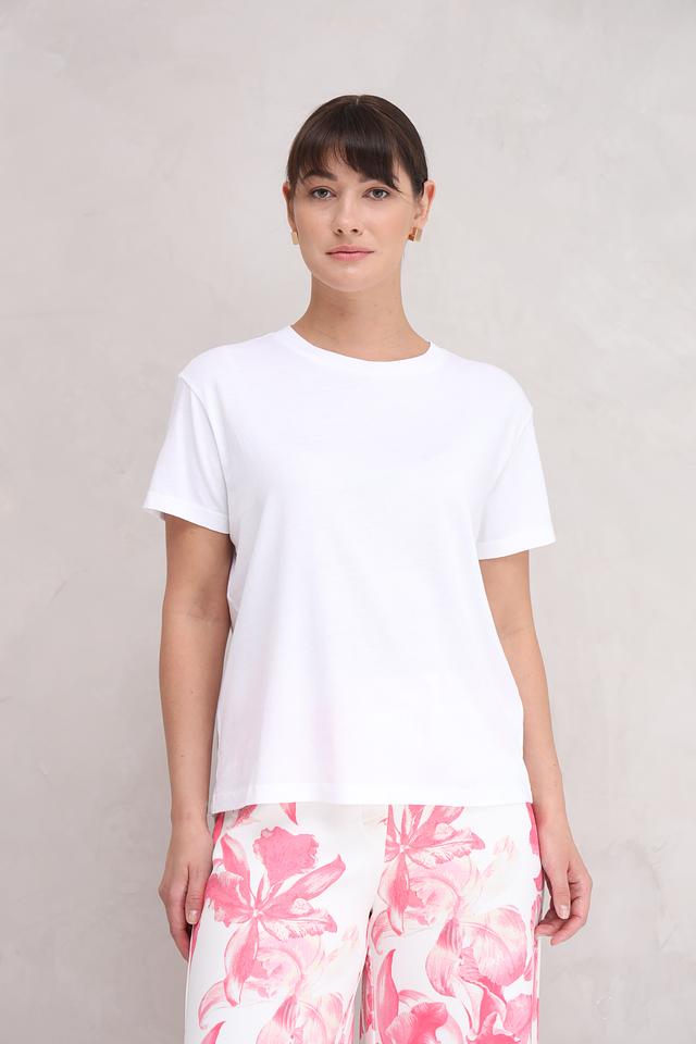 Классический прямой крой футболки подходит для любой фигуры, а круглый вырез горловины добавляет ей универсальности. Футболка идеально сочетается с джинсами, брюками, юбками и шортами, позволяя создавать разнообразные стильные образы.