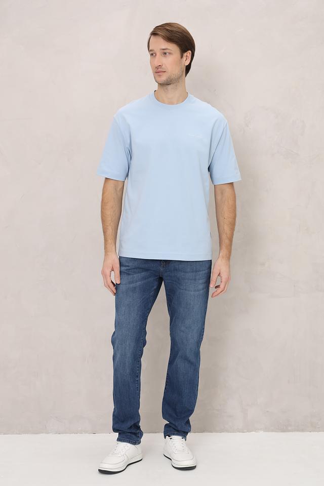 Особенностью данной модели является её лаконичный дизайн. На груди располагается небольшая вышивка с логотипом бренда, выполненная в тон ткани. Круглый вырез горловины и короткие рукава делают футболку идеальным выбором для тёплой погоды.