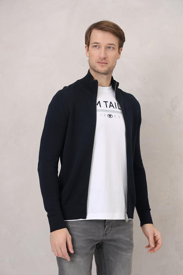 Кардиган имеет удобную застёжку на молнии, воротник-стойку и длинные рукава. Плотная вязка обеспечивает тепло и уют в прохладную погоду. Дизайн кардигана лаконичный и сдержанный, что делает его подходящим для мужчин, ценящих классику и минимализм.