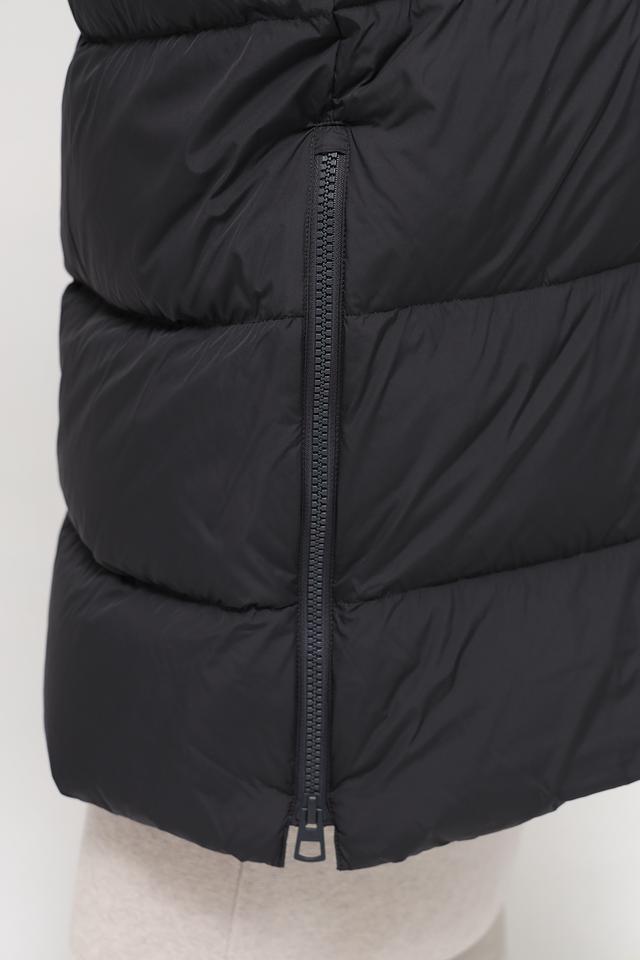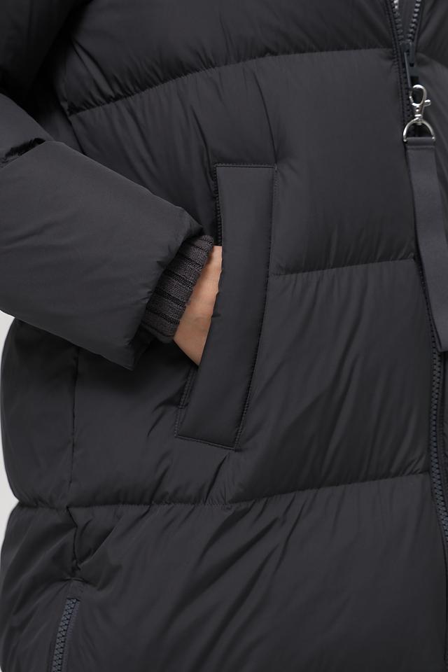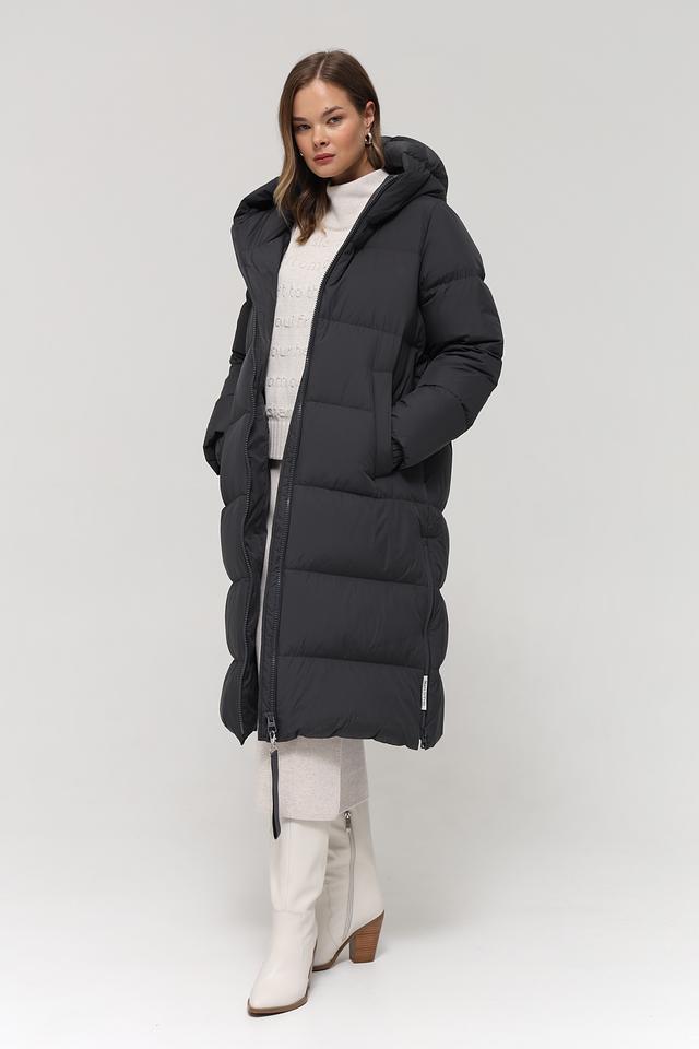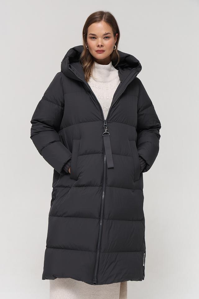 Данная модель выполнена в классическом чёрном цвете и имеет стеганую фактуру, которая придает ей особый шарм. Пальто имеет удобный капюшон, который защитит от непогоды, а застежка-молния обеспечивает легкость в использовании.