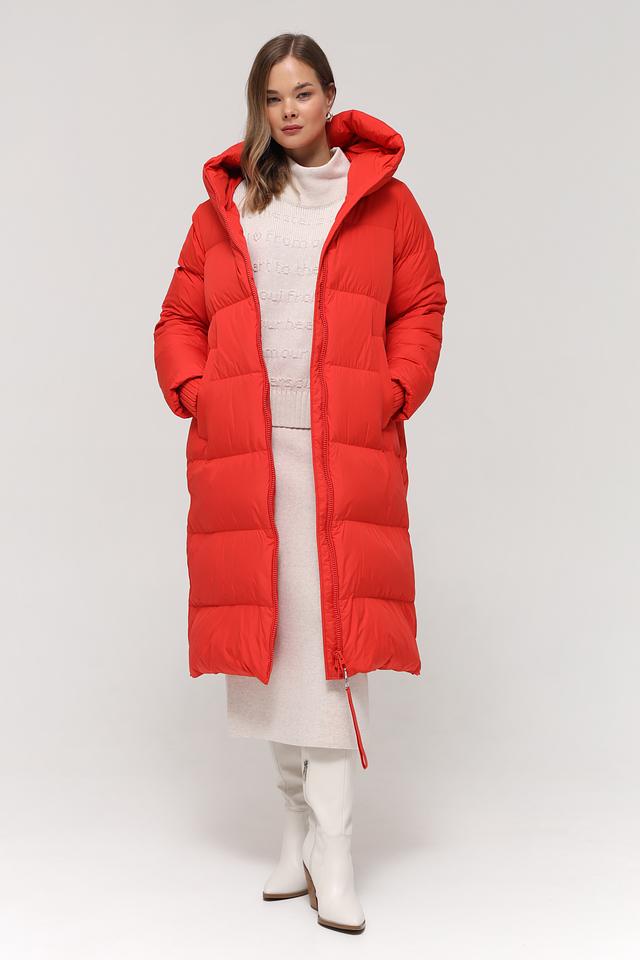 Пальто имеет прямой крой, длину макси и удобный капюшон, который защитит от ветра и непогоды. Стеганая фактура придает изделию современный вид и обеспечивает дополнительную теплоизоляцию.