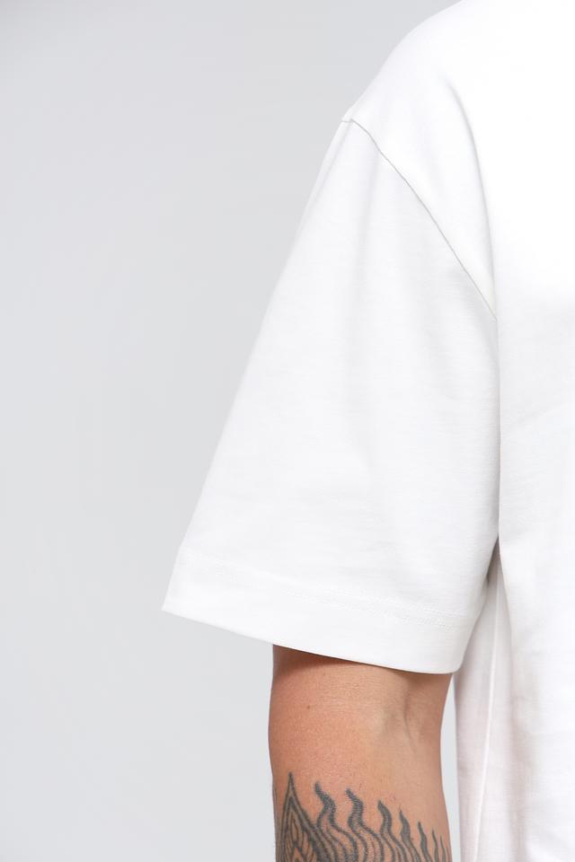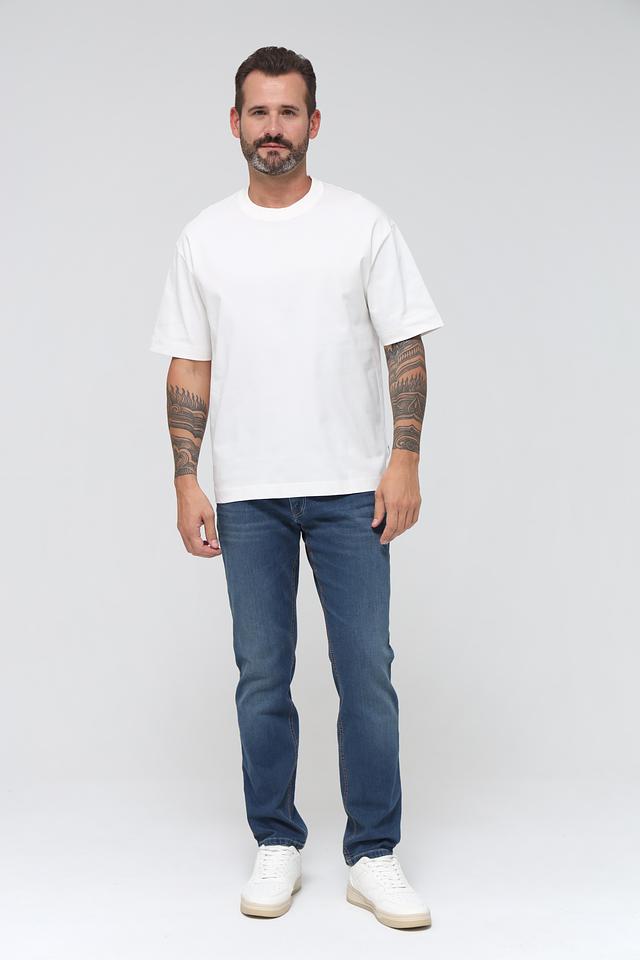 Футболка выполнена из 100% хлопка высокого качества, что обеспечивает комфорт и воздухопроницаемость. Прямой силуэт не сковывает движений, а круглый вырез горловины добавляет лаконичности.