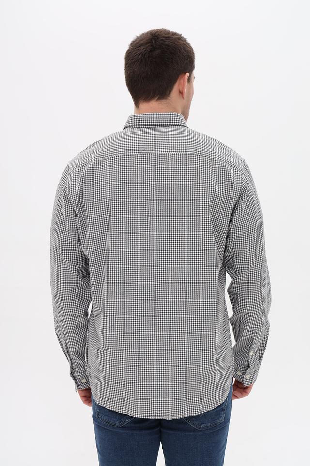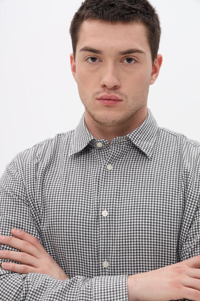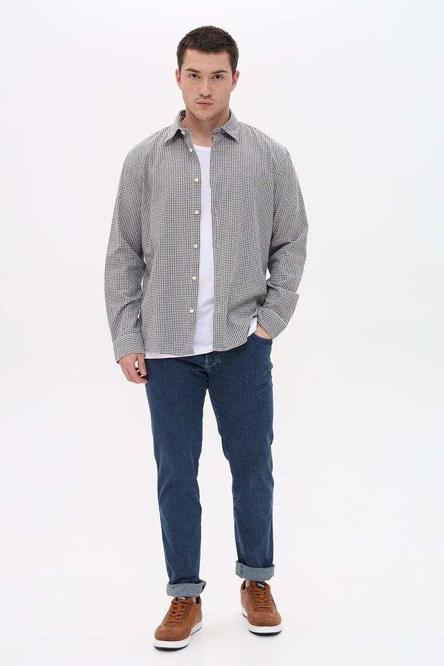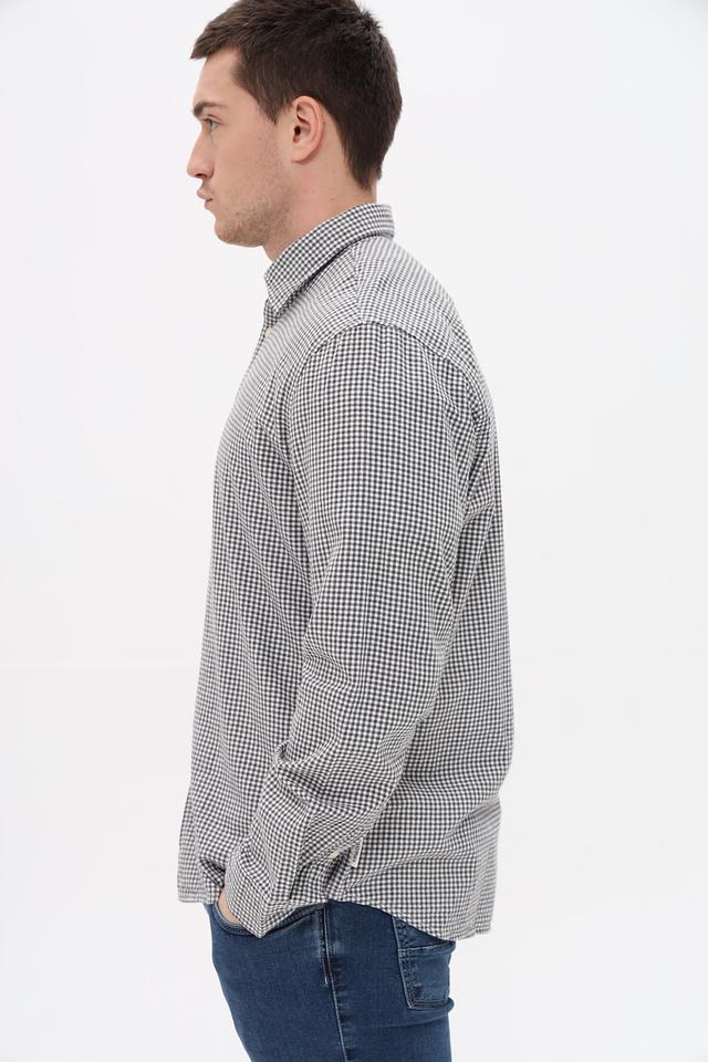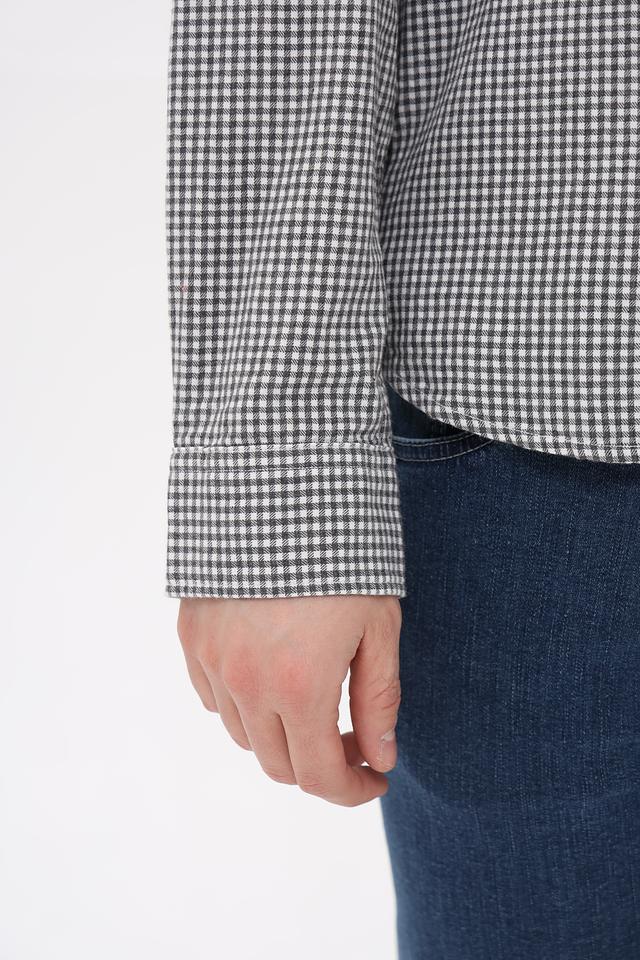 Основной цвет рубашки – чёрный, дополненный белым рисунком в клетку. Это сочетание делает рубашку универсальной и подходящей для различных образов. Ткань состоит из 100% хлопка, что обеспечивает приятные ощущения на коже и хорошую воздухопроницаемость.
