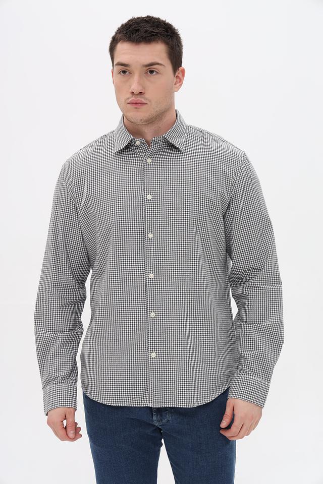 Мужская рубашка Marc O Polo чёрно-белого цвета в классическую клетку. Изготовлена из 100% хлопка, обеспечивающего комфорт и воздухопроницаемость. Отличный выбор для создания повседневного образа. Состав: хлопок 100%