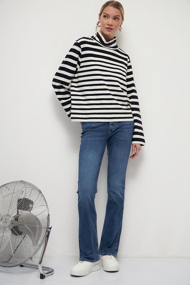 Джинсы выполнены из высококачественного хлопка (90%), который обеспечивает комфорт и воздухопроницаемость. Добавление полиэстера (9%) и эластана (1%) придает ткани прочность и эластичность, благодаря чему джинсы хорошо держат форму и не сковывают движения.