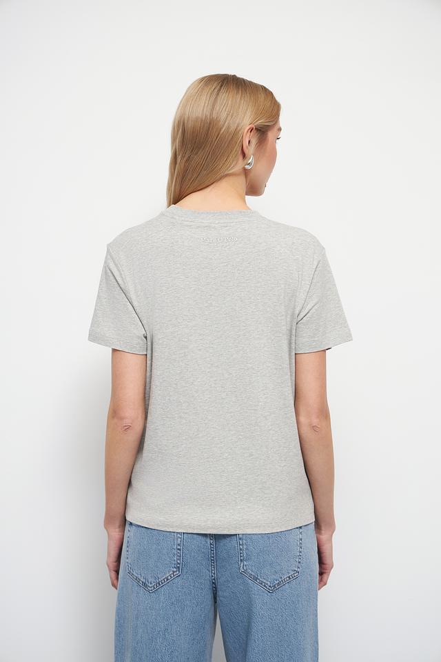 Серая футболка Marc O Polo из хлопка с вискозой, украшенная принтом с надписью. Базовая модель свободного кроя станет отличным дополнением к повседневному гардеробу. Состав: хлопок 53%, вискоза 43%, эластан 4%