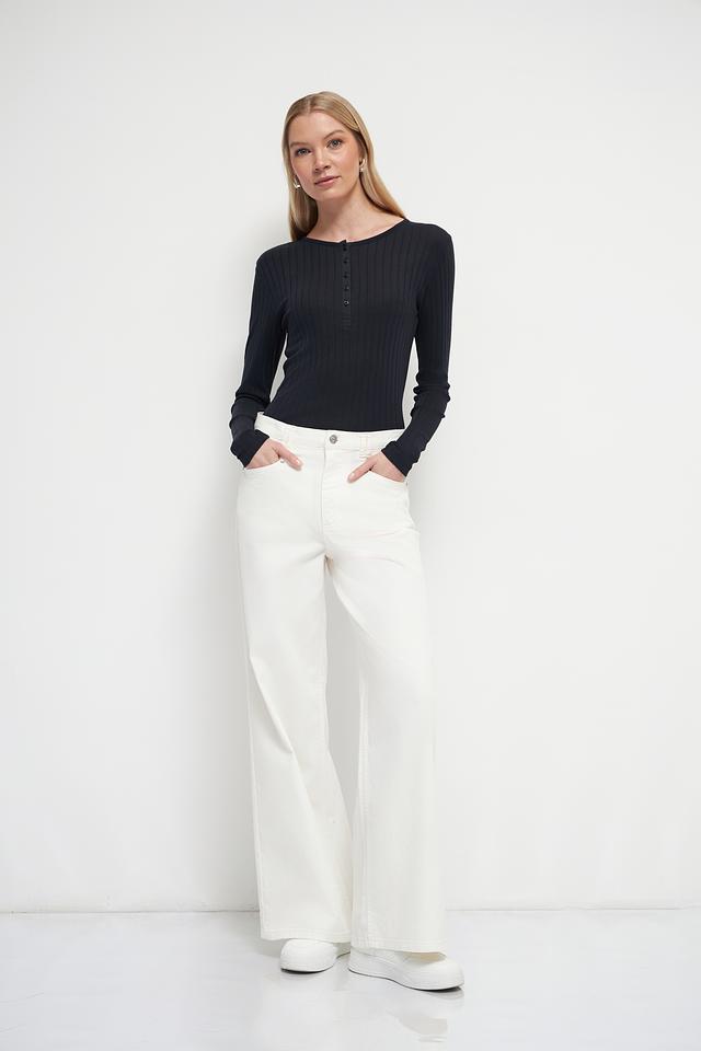 Лонгслив имеет круглый вырез горловины, который дополнен планкой на пуговицах, придающей модели изысканность. Текстурированный трикотаж не только выглядит эффектно, но и приятен к телу.