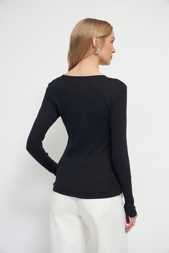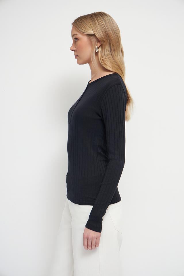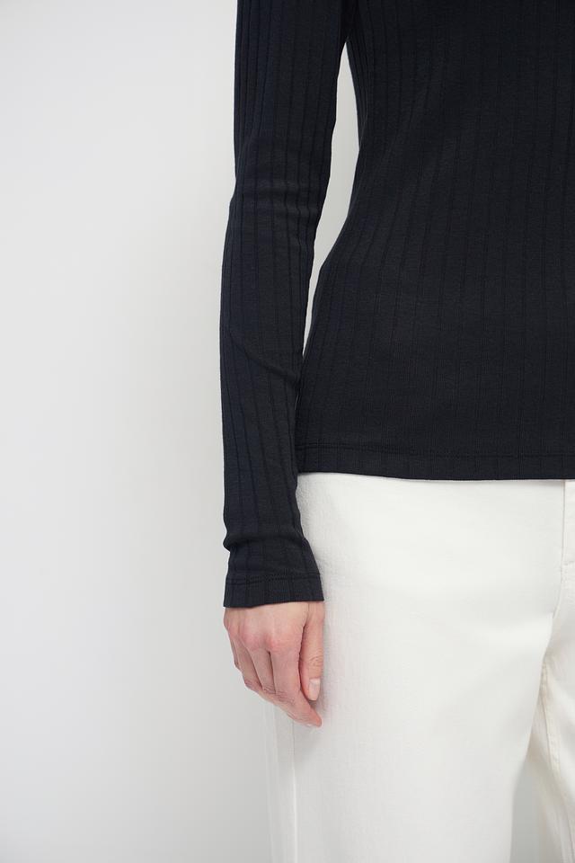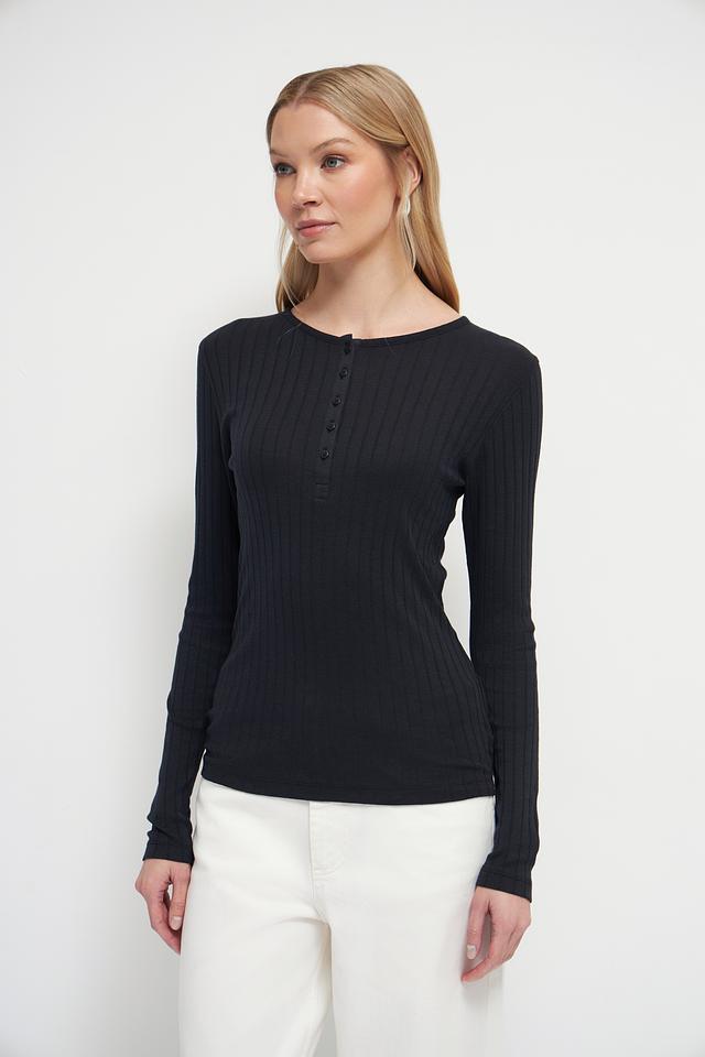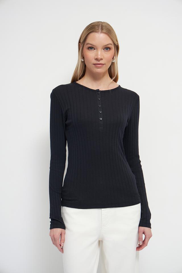 Чёрный лонгслив Marc O Polo из текстурированного трикотажа с круглым вырезом и планкой на пуговицах. Изготовлен из мягкого хлопка с добавлением модала для комфорта и приятных тактильных ощущений. Состав: хлопок 52%, модал 48%