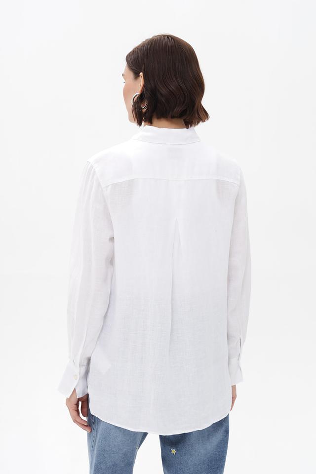 Рукава блузы длинные, с манжетами на пуговицах, что позволяет регулировать их длину. Благодаря своему минималистичному дизайну, эта блуза легко сочетается с различными элементами гардероба – от джинсов и брюк до юбок и шорт. Она станет незаменимой вещью в вашем летнем гардеробе.