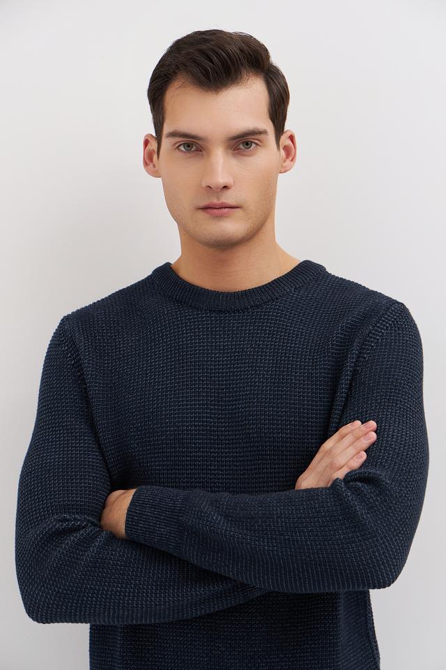 Мужской джемпер Marc O Polo тёмно-синего цвета выполнен из 100% хлопка и имеет текстурную вязку. Классический крой и круглый вырез делают этот джемпер универсальным дополнением к вашему гардеробу. Состав: хлопок 100%