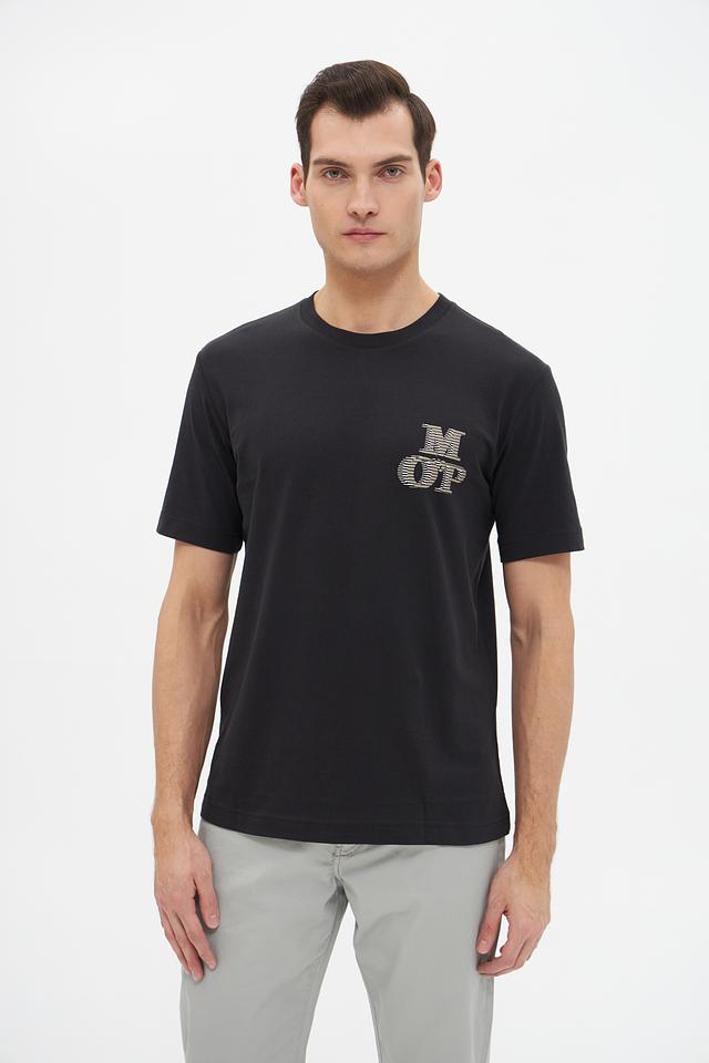 Чёрная футболка Marc O Polo из 100% хлопка с оригинальным принтом логотипа на груди. Классический крой и мягкий материал обеспечивают комфорт в повседневной носке. Состав: хлопок 100%
