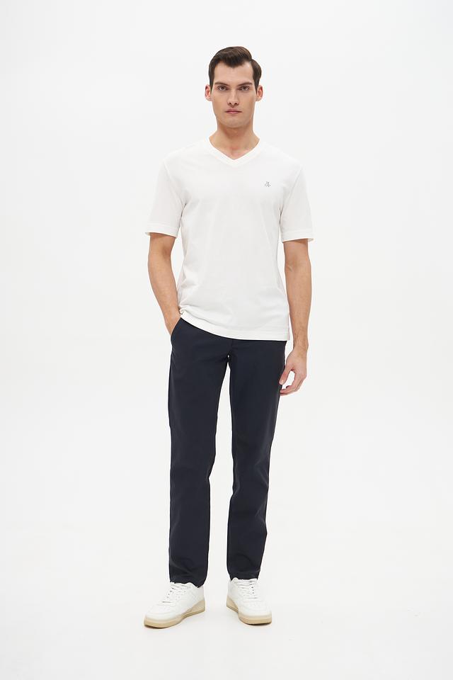 Классический крой с V-образным вырезом делает эту футболку универсальной и подходящей для различных стилей. Она легко сочетается с джинсами, брюками чинос или шортами, создавая непринужденный и стильный образ.