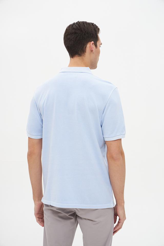 Данная модель имеет классический крой, который подходит для большинства типов фигур. Голубой цвет придает поло свежий и современный вид, позволяя легко сочетать его с различными элементами гардероба.