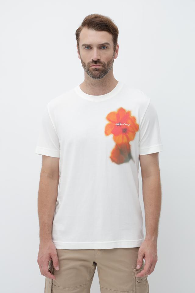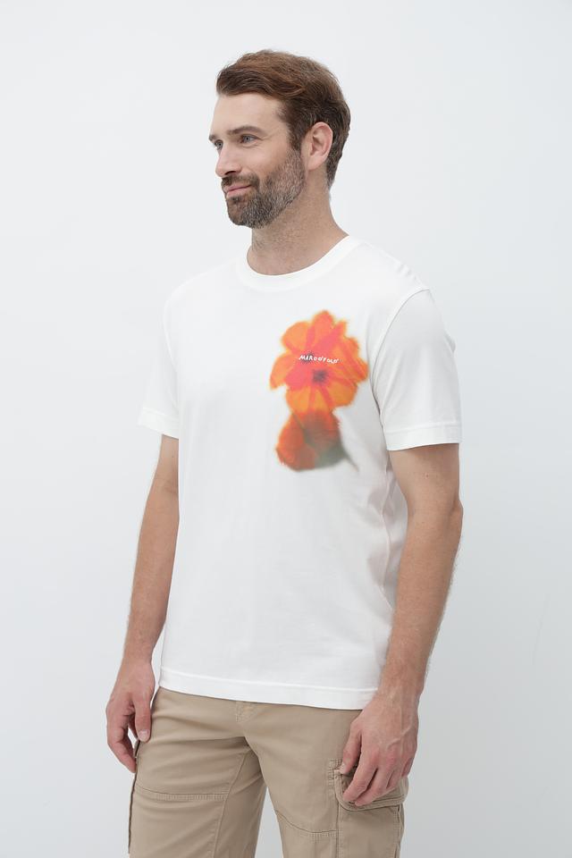 Мужская футболка Marc O Polo белого цвета с ярким цветочным принтом на груди. Изготовлена из 100% хлопка, обеспечивающего комфорт и воздухопроницаемость. Стильный и удобный выбор для повседневного образа. Состав: хлопок 100%