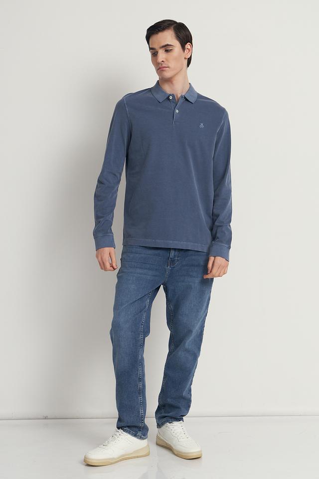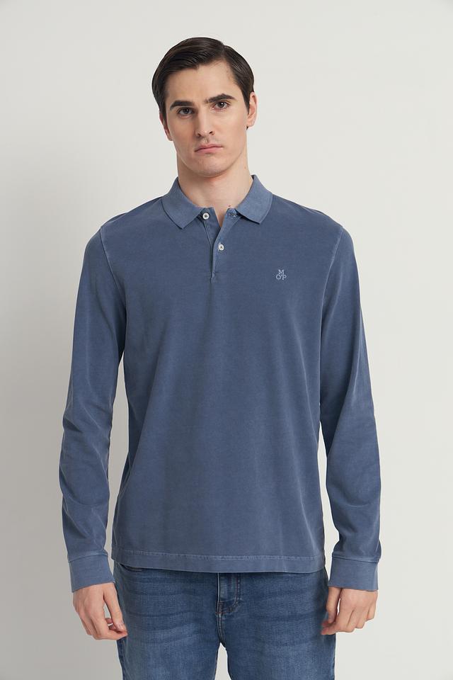 Это мужское поло от Marc O Polo выполнено в спокойном синем цвете и имеет длинный рукав, что делает его отличным выбором для прохладной погоды или для создания многослойного образа.