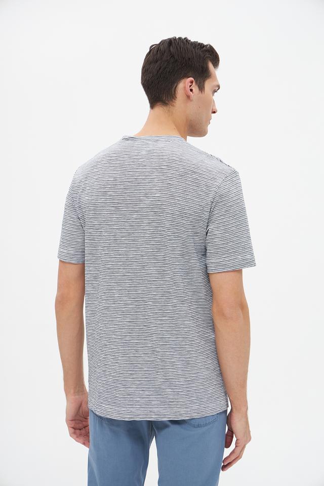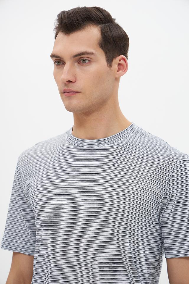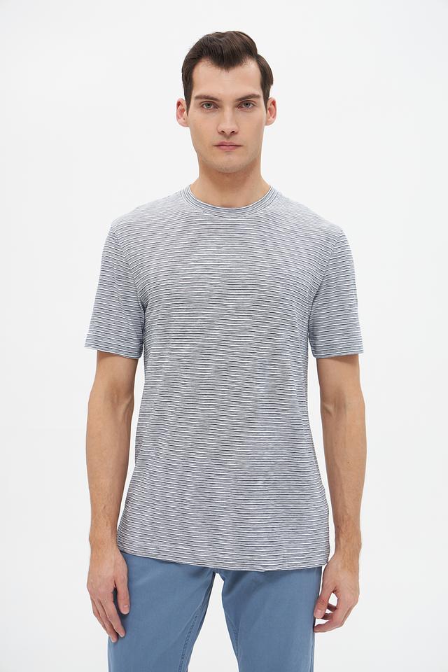 Мужская футболка Marc O Polo голубого цвета с классическим полосатым дизайном. Изготовлена из 100% хлопка, обеспечивающего комфорт и воздухопроницаемость. Идеальный выбор для повседневного образа. Состав: хлопок 100%