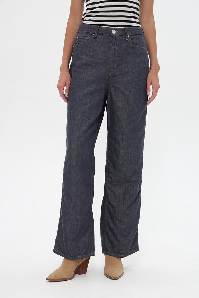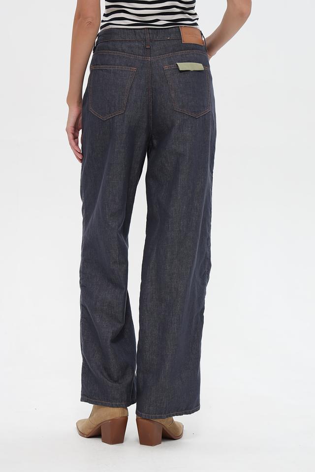 Женские джинсы Marc O Polo синего цвета, выполнены из хлопка с добавлением льна. Модель широкого кроя с высокой посадкой и классическими карманами. Состав: хлопок 70%, лен 30%