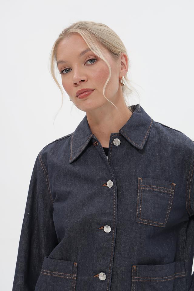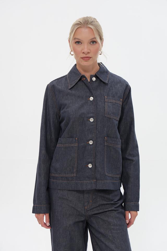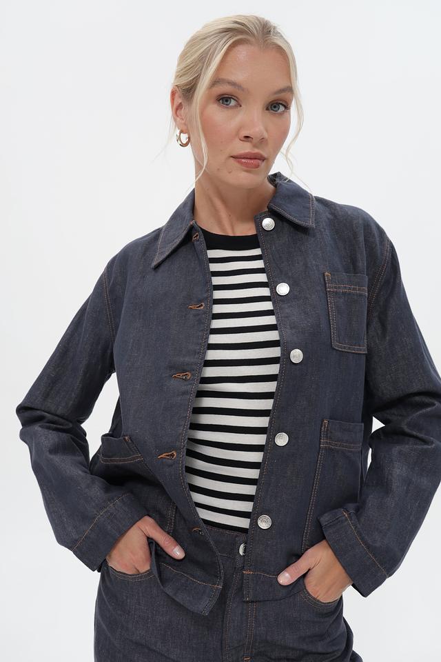 Джинсовый жакет Marc O Polo тёмно-синего цвета – стильная и практичная модель на пуговицах. Жакет имеет классический крой и выполнен из натурального хлопка с добавлением льна, что обеспечивает комфорт и воздухопроницаемость. Состав: хлопок 63%, лен 37%