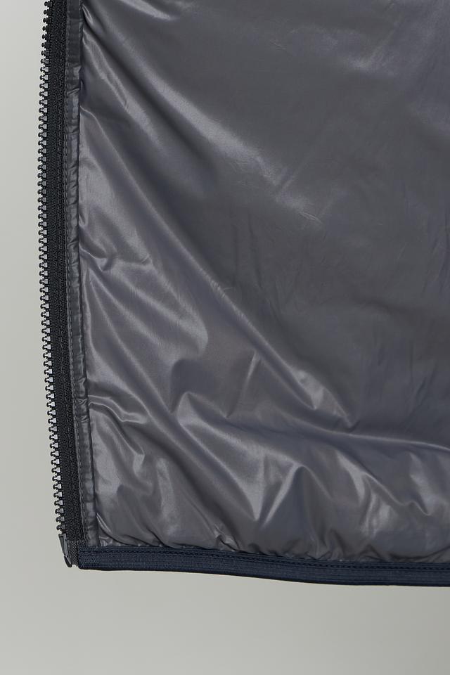 Передняя часть и спинка куртки выполнены из стеганого полиэстера, что придает ей объем и теплоизоляционные свойства. Плечи и рукава отделаны гладкой тканью, что создает контрастный эффект и подчеркивает современный силуэт. Застежка – молния. Воротник – стойка.