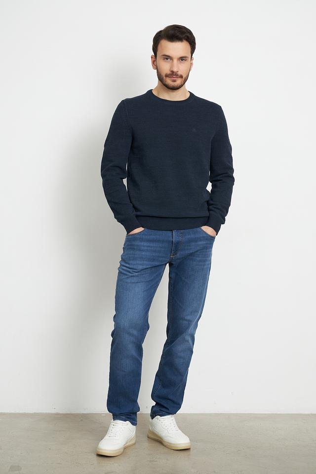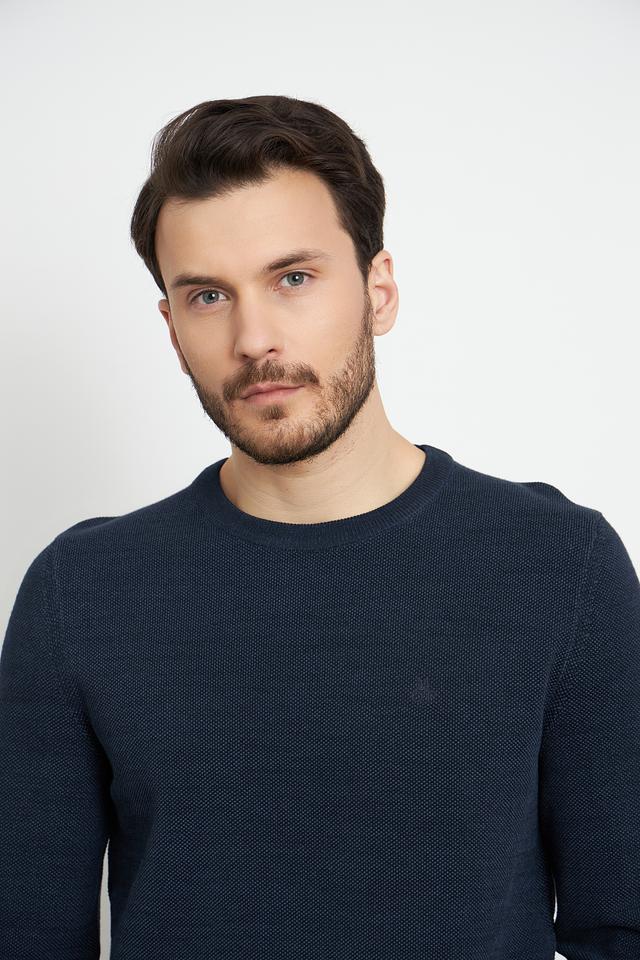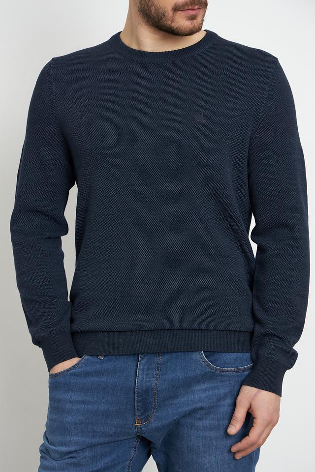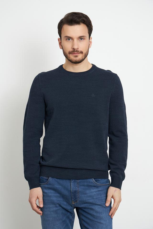 Мужской пуловер Marc O Polo тёмно-синего цвета выполнен из 100% хлопка. Модель имеет круглый вырез горловины и текстурную вязку. Стильный и комфортный выбор для повседневного гардероба. Состав: хлопок 100%