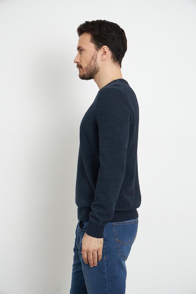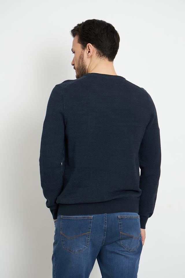 Тёмно-синий цвет пуловера легко сочетается с другими элементами гардероба, позволяя создавать разнообразные образы – от повседневных до более формальных. Этот пуловер станет отличным дополнением к вашему стилю и обеспечит комфорт в течение всего дня.
