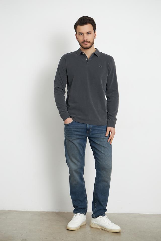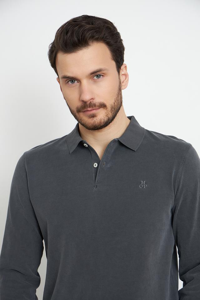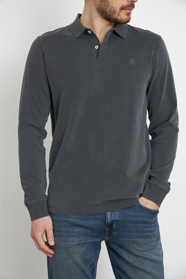 Мужское поло от Marc O Polo выполнено в спокойном сером цвете и имеет длинный рукав, что делает его отличным выбором для прохладной погоды. Эта модель сочетает в себе классический стиль и современный комфорт.