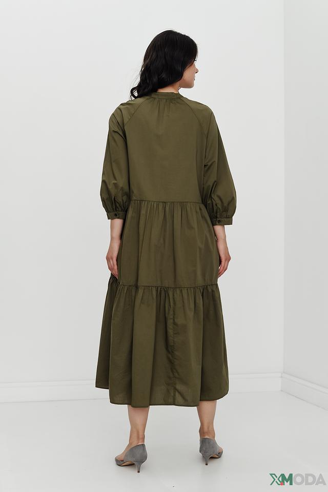 Оливковое платье от Marc O Polo – это стильное и комфортное решение для повседневного образа. Платье выполнено из хлопка с добавлением тенсела, имеет свободный крой, рукава 3/4 с манжетами и многоярусную юбку. Состав: хлопок 60%, тенсель 40%