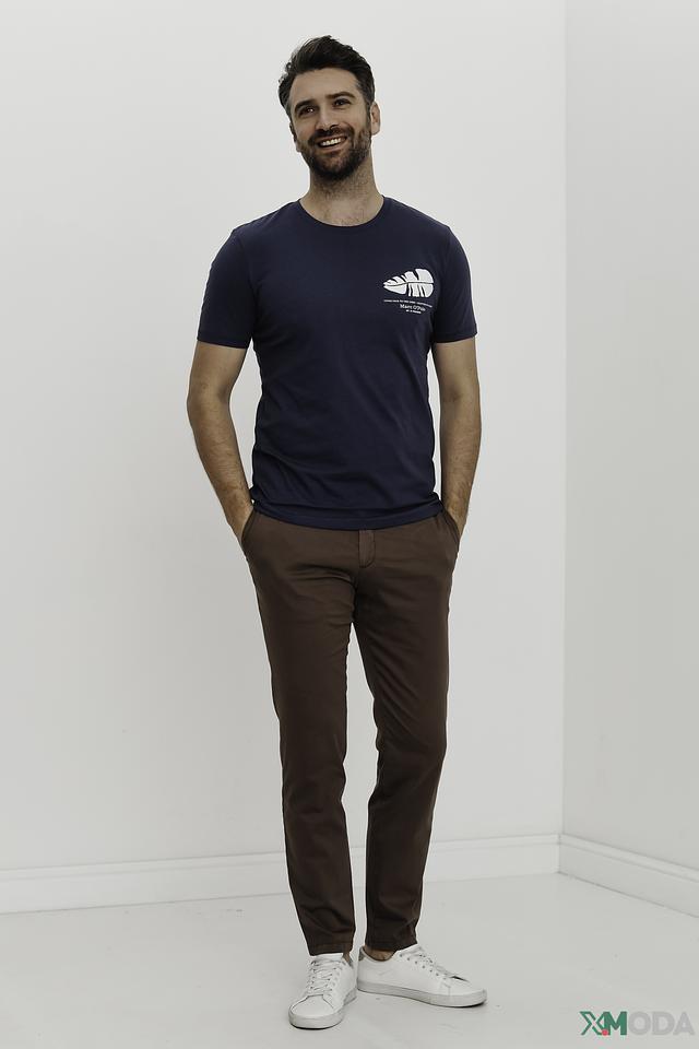 Мужская футболка Marc O Polo синего цвета, украшенная принтом с изображением листа. Изготовлена из 100% хлопка, обеспечивающего комфорт и воздухопроницаемость. Стильный и лаконичный дизайн. Состав: хлопок 100%