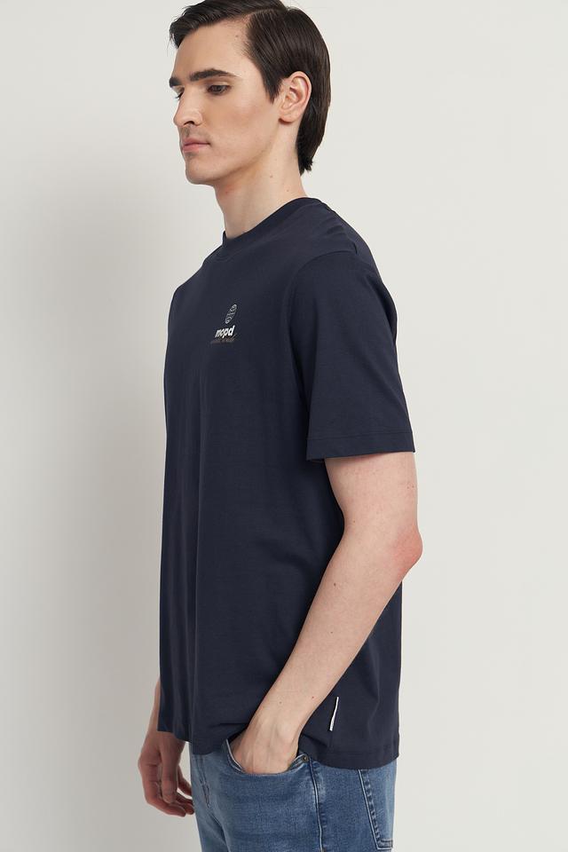Мужская футболка Marc O Polo DENIM темно-синего цвета с круглым вырезом и небольшим логотипом на груди. Изготовлена из 100% хлопка, обеспечивающего комфорт и воздухопроницаемость. Состав: хлопок 100%