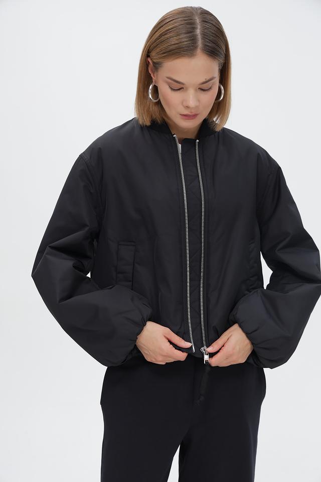 Куртка имеет свободный крой, который не сковывает движения и позволяет создать комфортный образ. Объемные рукава придают изделию оригинальность и акцент на верхней части силуэта. Застежка-молния обеспечивает удобство надевания и снятия.