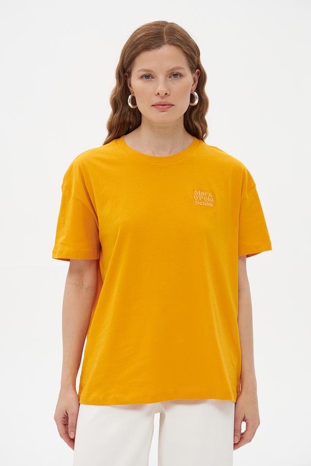 Женская футболка Marc O Polo DENIM горчичного цвета – это стильная и комфортная модель из 100% хлопка. Футболка имеет свободный крой и короткий рукав, а также украшена небольшим логотипом бренда на груди. Состав: хлопок 100%