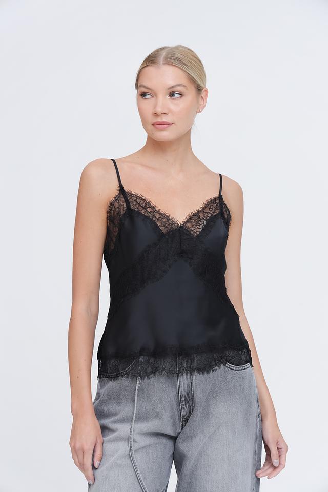 Изящный топ Marciano чёрного цвета с деликатным кружевным декором. Модель на тонких бретелях, выполненная из гладкого полиэстера, станет стильным дополнением к вашему гардеробу. Состав: полиэстер 100%