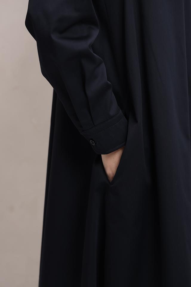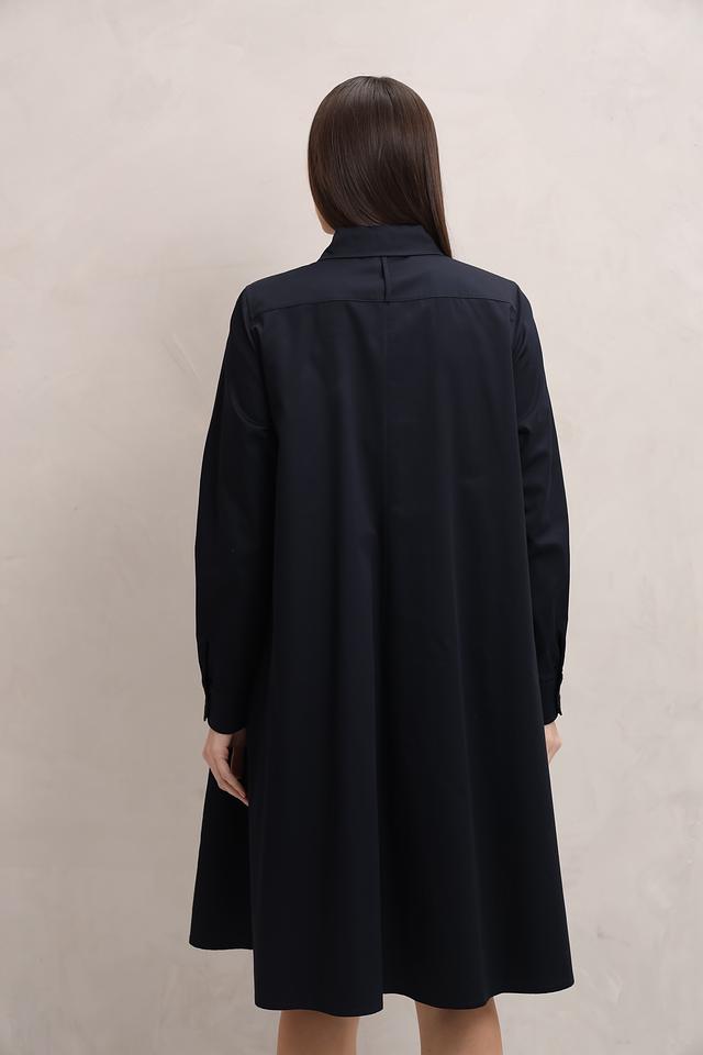 Платье выполнено из 100% хлопка, что делает его приятным к телу и обеспечивает хорошую воздухопроницаемость. Застёжка на пуговицах по всей длине переда. Рукава длинные, с манжетами на пуговицах.