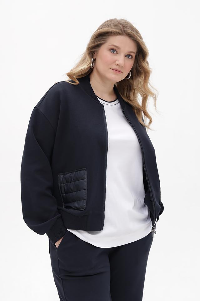 Женская куртка-бомбер от бренда Margittes выполнена в темно-синем цвете. Модель имеет свободный крой, который обеспечивает комфорт и свободу движений. Куртка застегивается на молнию, имеет воротник-стойку и эластичные манжеты.