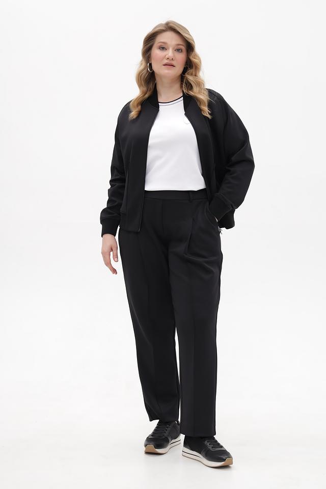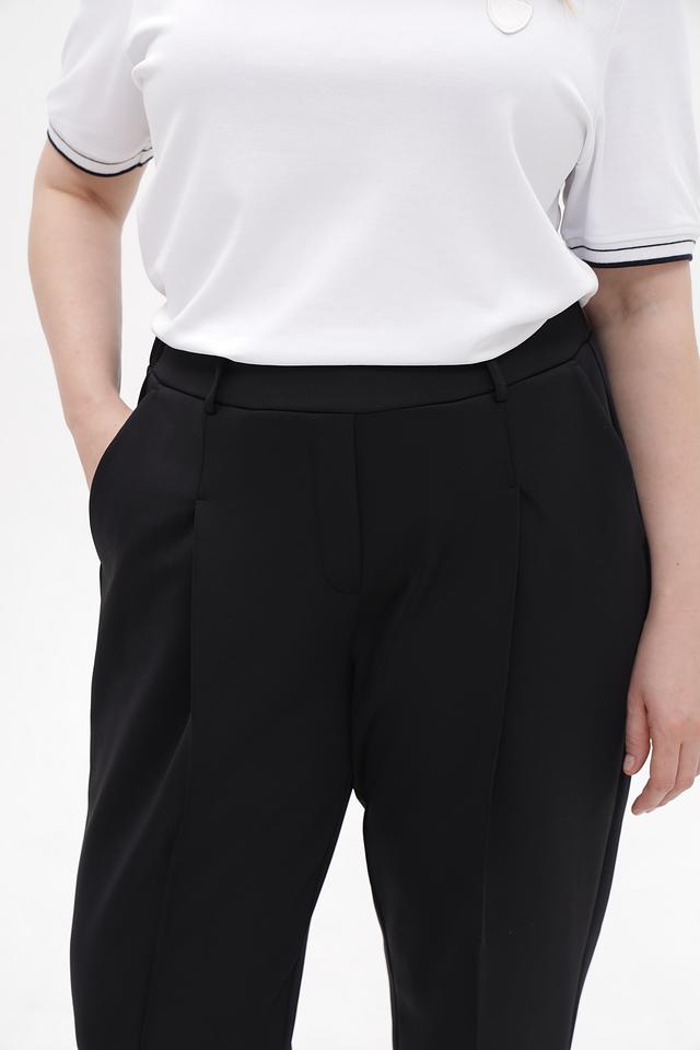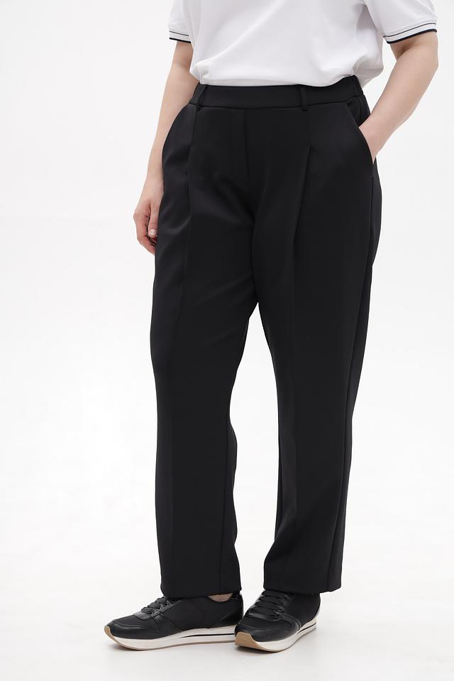 Чёрные классические брюки от Margittes из полиэстера с добавлением эластана. Модель прямого кроя с завышенной талией и складками. Идеальный выбор для создания элегантного образа. Состав: полиэстер 94%, эластан 6%