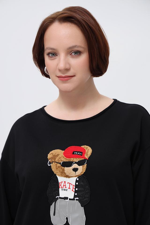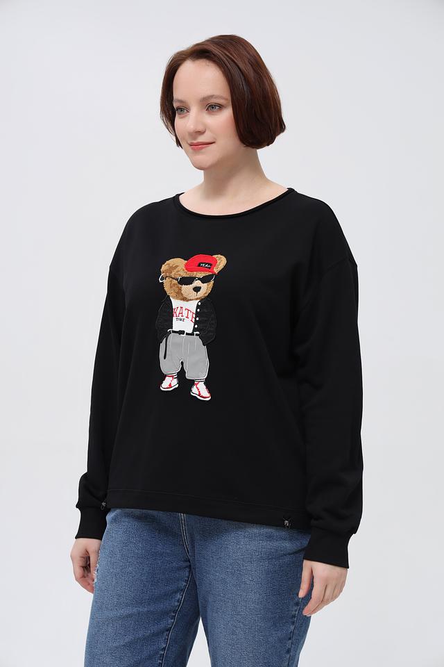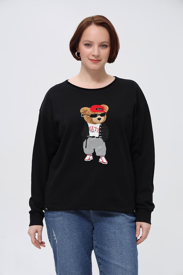 Чёрный пуловер от Margittes с ярким принтом милого медвежонка станет отличным дополнением к вашему образу. Модель выполнена из мягкого хлопка с добавлением полиэстера для комфорта и долговечности. Состав: хлопок 84%, полиэстер 16%