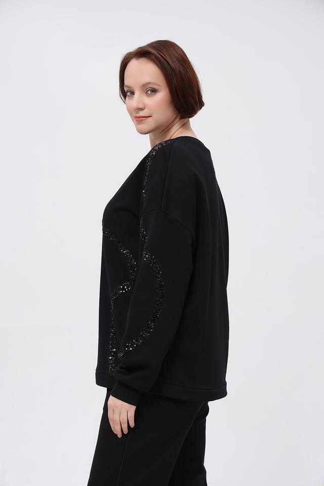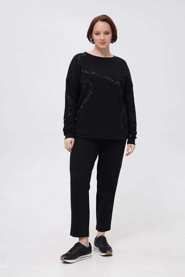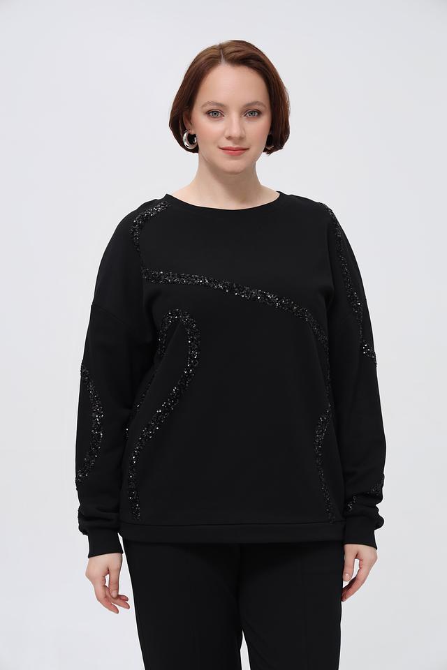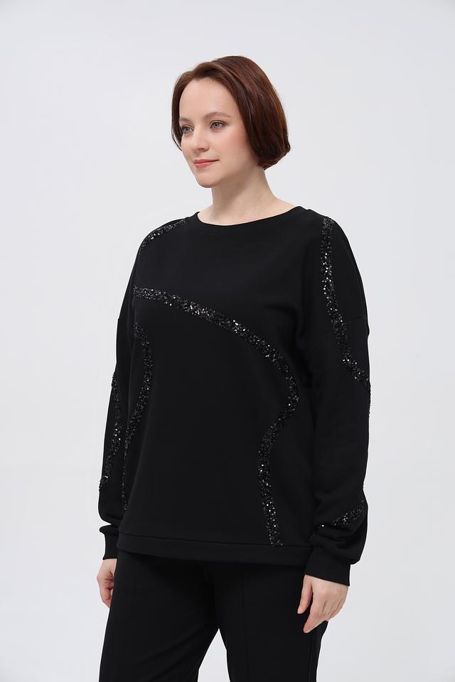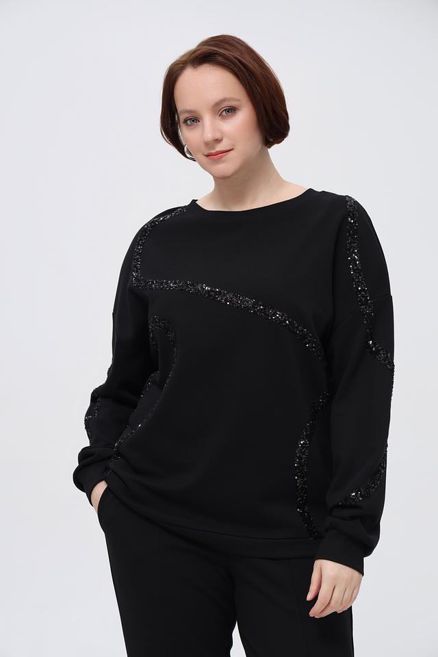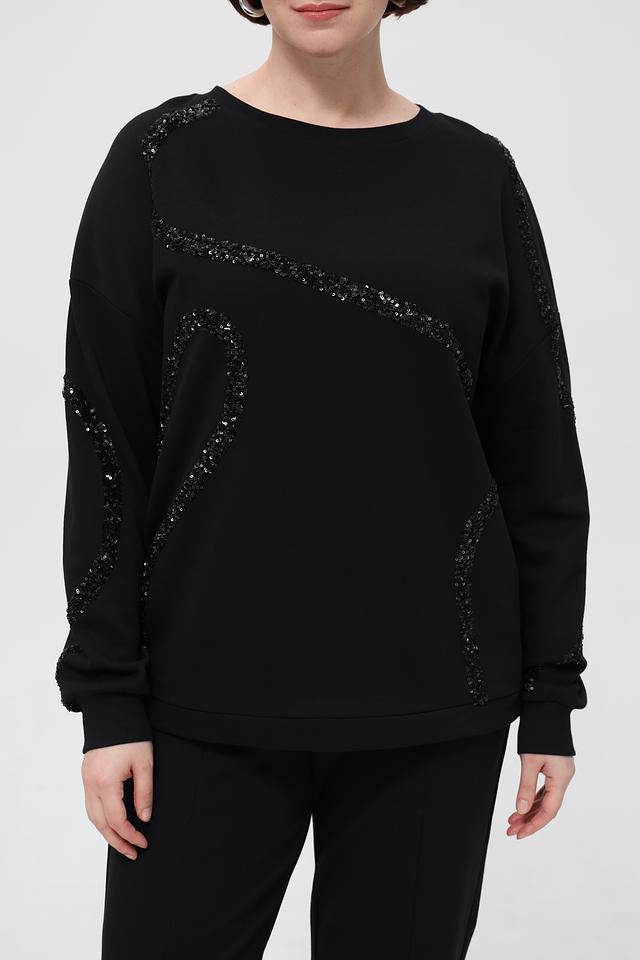 Чёрный пуловер от Margittes, украшенный узорами из пайеток, станет стильным дополнением к вашему гардеробу. Изготовлен из мягкого хлопка с добавлением полиэстера для комфорта и износостойкости. Состав: хлопок 94%, полиэстер 6%