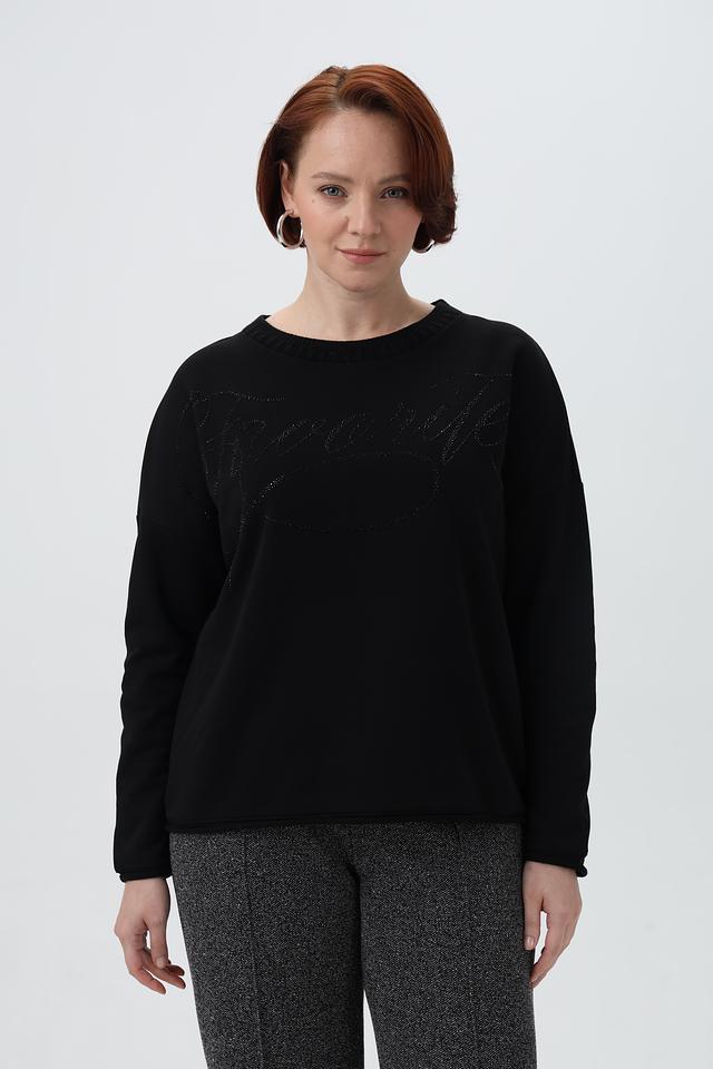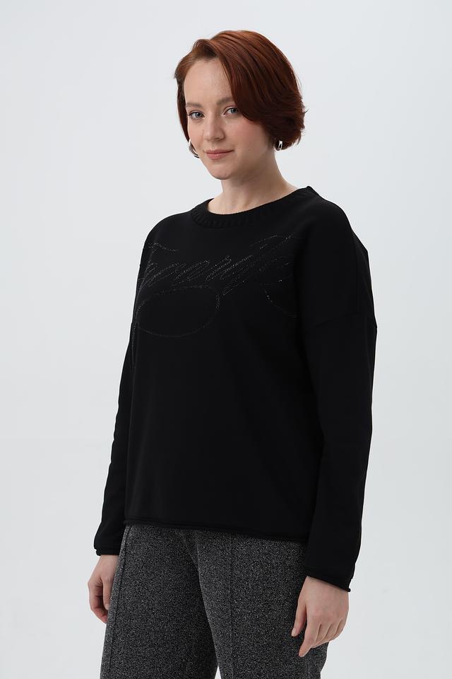 Чёрный пуловер от Margittes с эффектной вышивкой - идеальный выбор для создания стильного повседневного образа. Изготовлен из мягкого хлопка с добавлением полиэстера для комфорта и износостойкости. Состав: хлопок 84%, полиэстер 16%